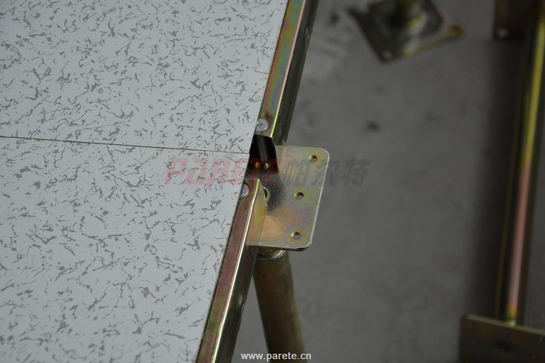 木基防静电架空地板-HPL贴面 采用E1级优质加厚刨花极芯基材或MDF基材,表面HPL贴面,四边粘导静电胶条,底面采用压花铝箔或镀锌钢板。横梁选用钢材模压 -
